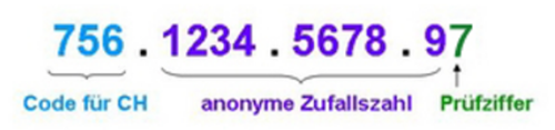 Die 13-stellige AHV-Nummer besteht aus drei Teilen:
